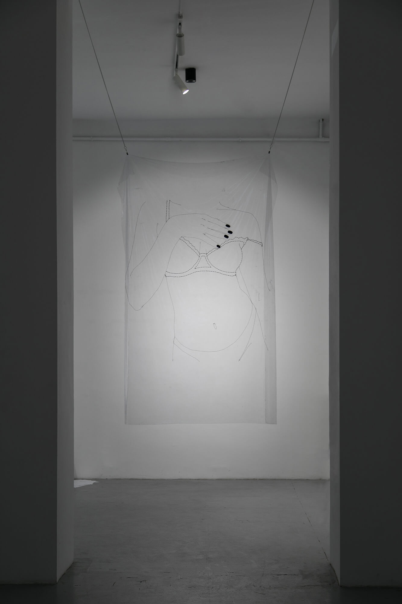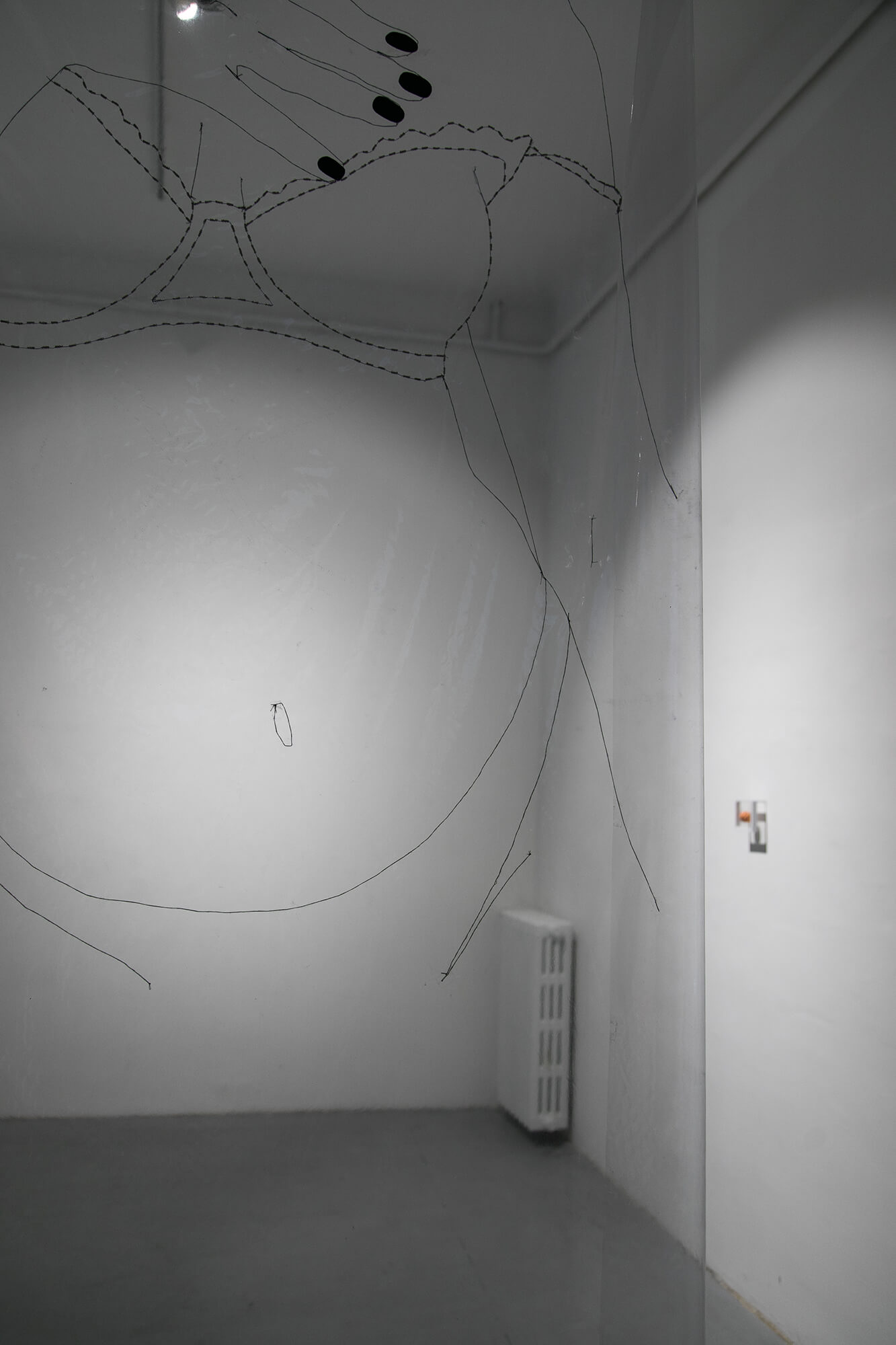 The distribution of power between the owner and the owned puts intimacy and transintimacy into a new perspective, one that defines relationships in a sense broader than the one set in the technologically-empowered age that we’re in. Through her work, Jelena Pantelić deals with both: confiding in others and confiding in technology, which ultimately projects from and onto self-confidence. A very lucid way to portray relationships is to speak in sexual terms, of fetishes and of kinks, and to allow for the boundaries to get defined by opposites. This encourages the audience to associate the matters in Pantelić’s art with dichotomies such as sadomasochism, voyeurism and exhibitionism, which the artist now utilises even more directly with the title of this exhibition. All the while, however, the question of actual intercourse is left up in the air. As spectators, we’re confronted with an open display of desire, yet we rarely see reciprocity. Even with the video showing two lovers in a parking lot, after having seen the initially exciting but ultimately repetitive kissing in a car, the focus of the viewer shifts from the couple to the person behind the camera (or even more relatively speaking, back to ourselves).